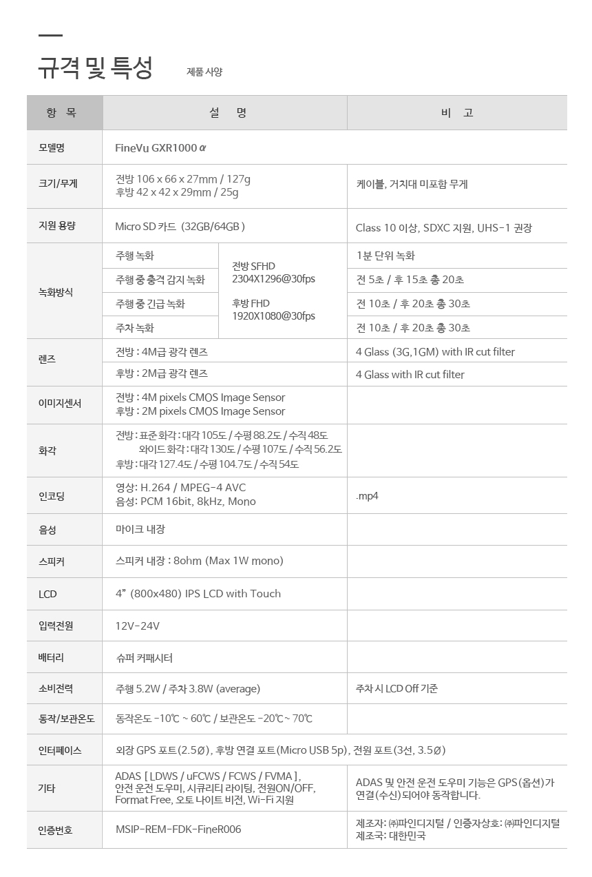 파인디지털 파인뷰 GXR1000a 32GB+GPS+동글이포함 2채널 블랙박스