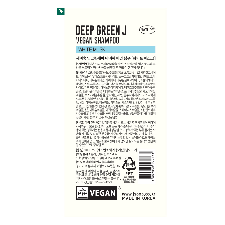 [제이숲] 딥그린제이 네이처 샴푸 1000ml - 화이트머스크