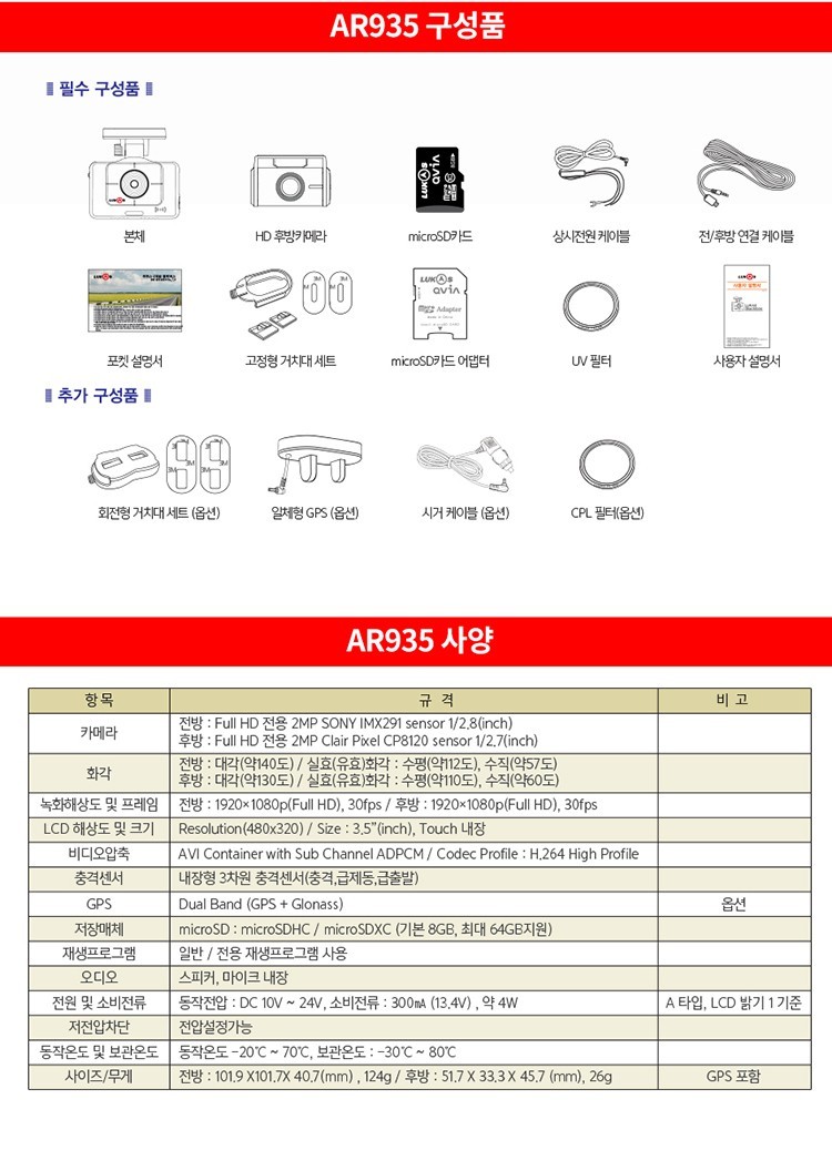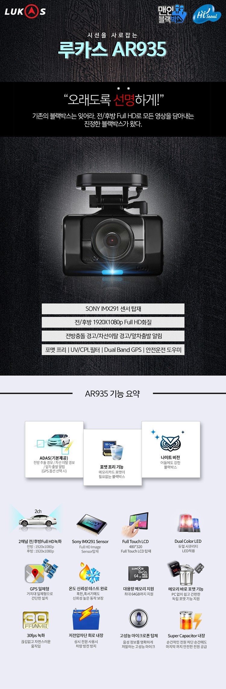 [LUCAS] 루카스 AR935 32GB Full HD 2채널 ADAS+나이트비전