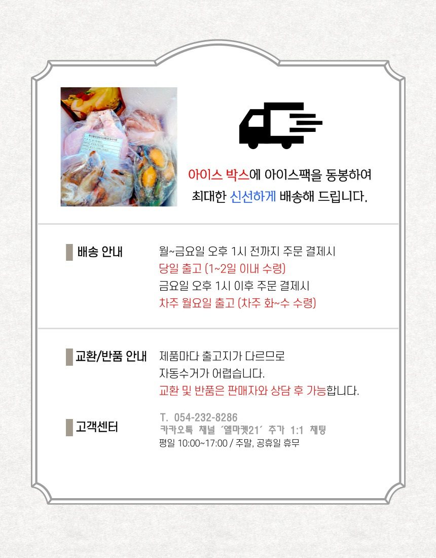신선식품으로 반품이 불가합니다. 제품에 이상시 고객센터로 연락부탁드립니다.