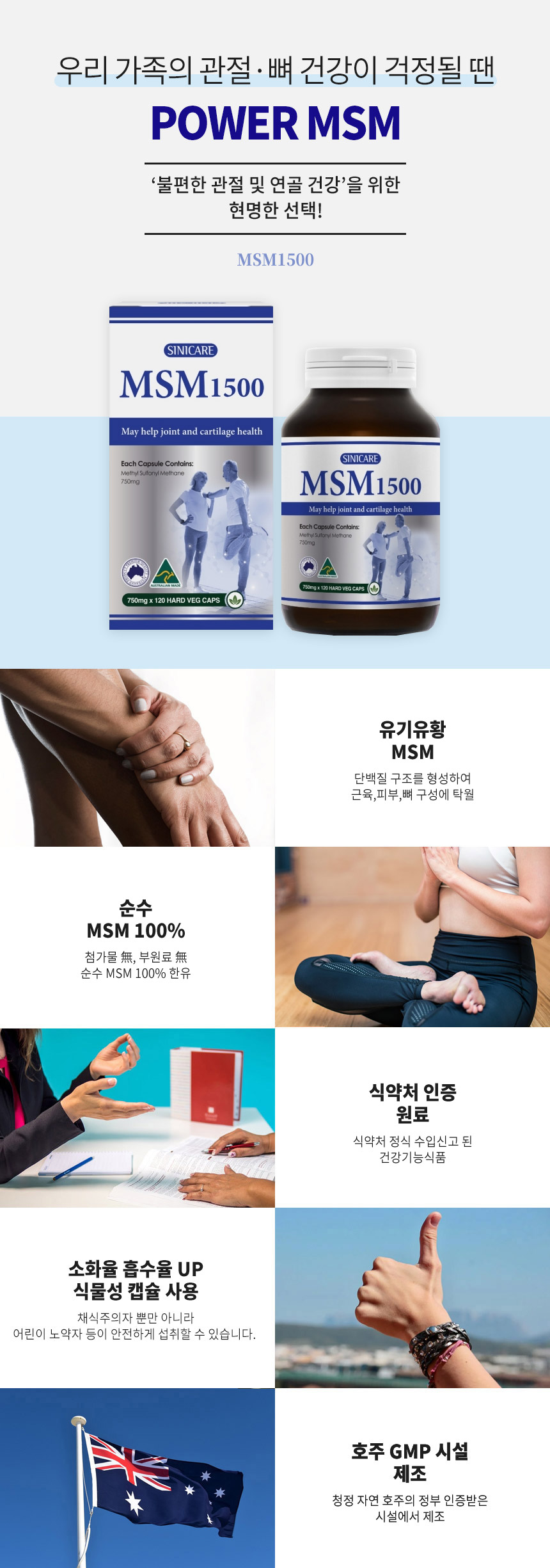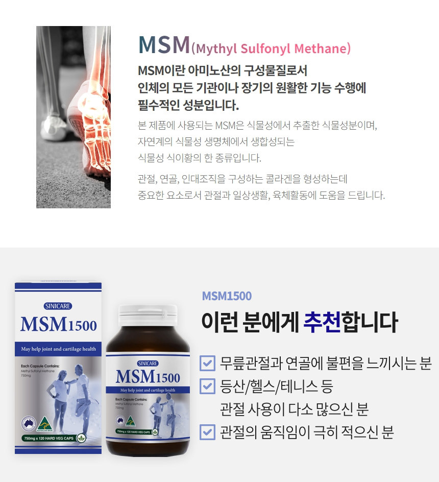 기능정보 엠에스엠(MSM):관절 및 연골건강에 도움을 줄 수 있음