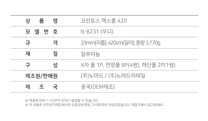 노마드 코린토스 엑스 폴 우디 차박 휴대용 캠핑 용품 N-8231