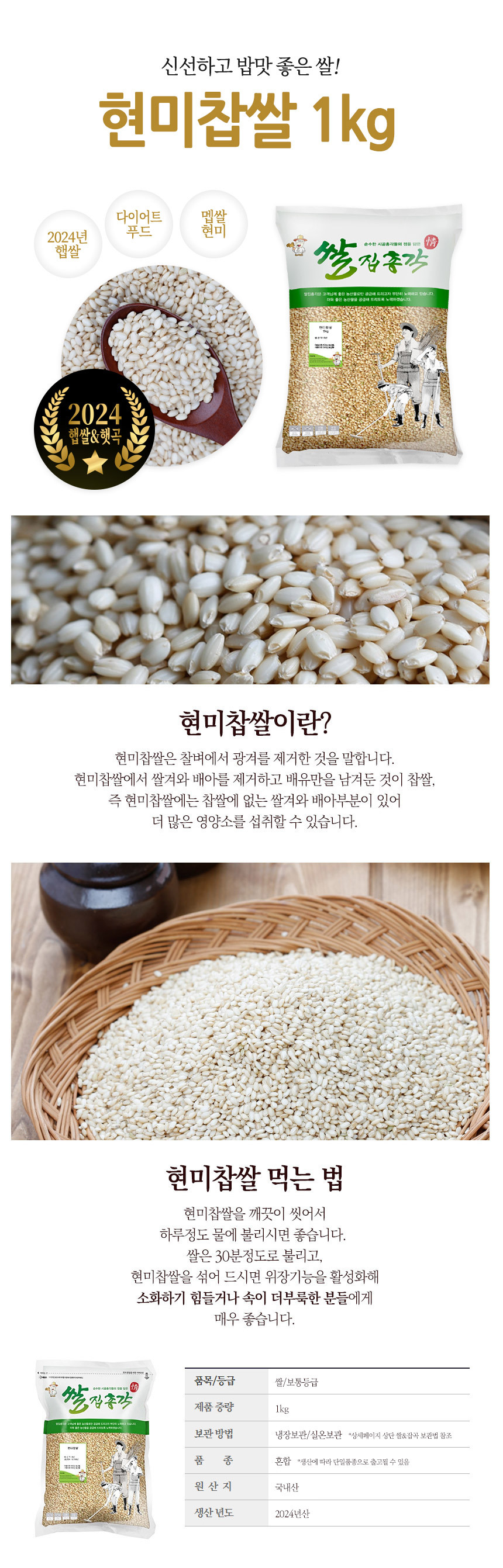 [2024년햅쌀] 국내산 현미찹쌀 1kg