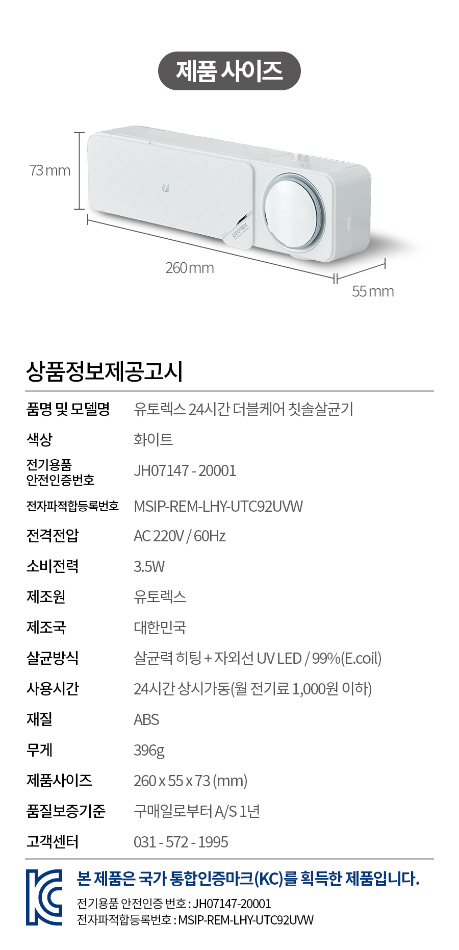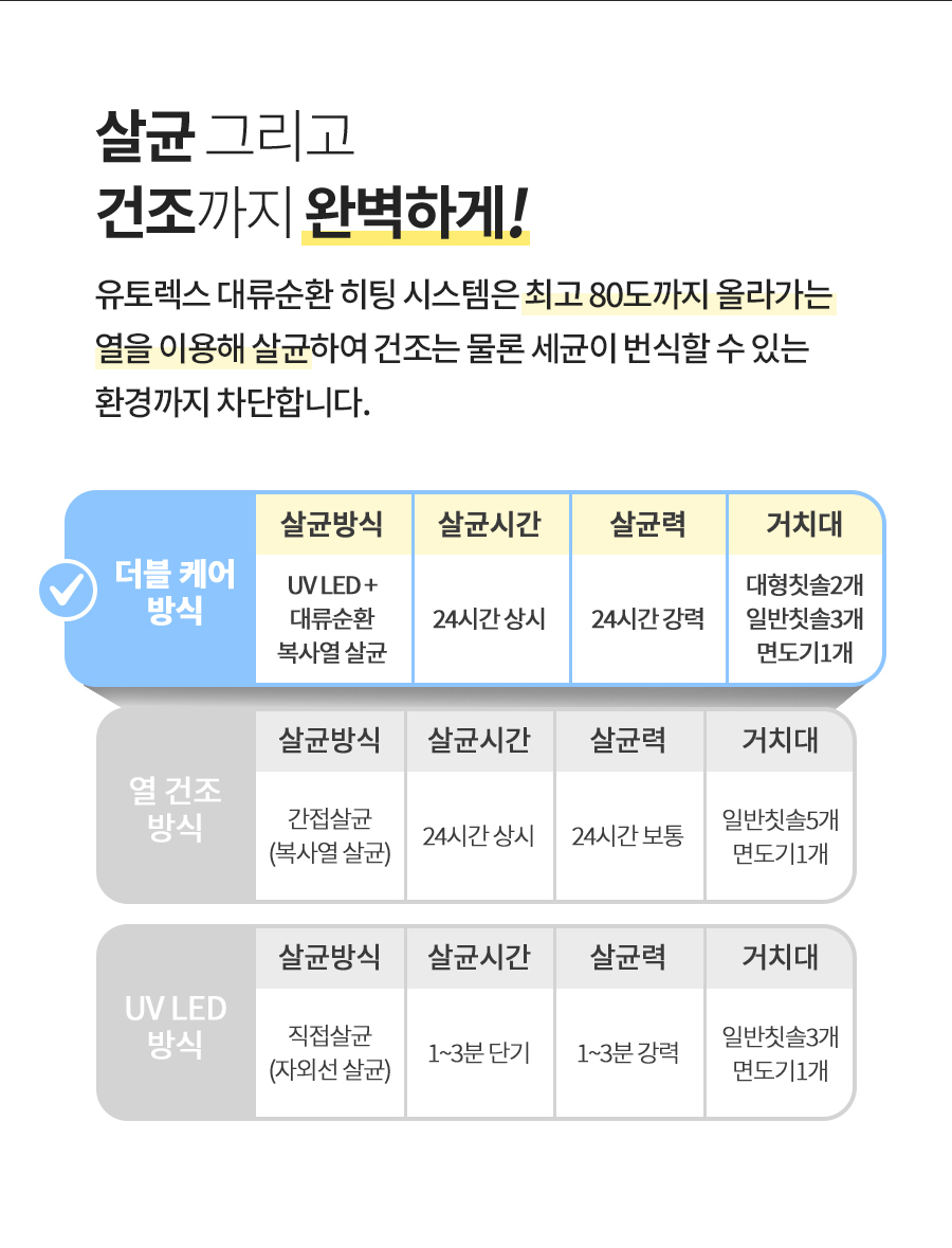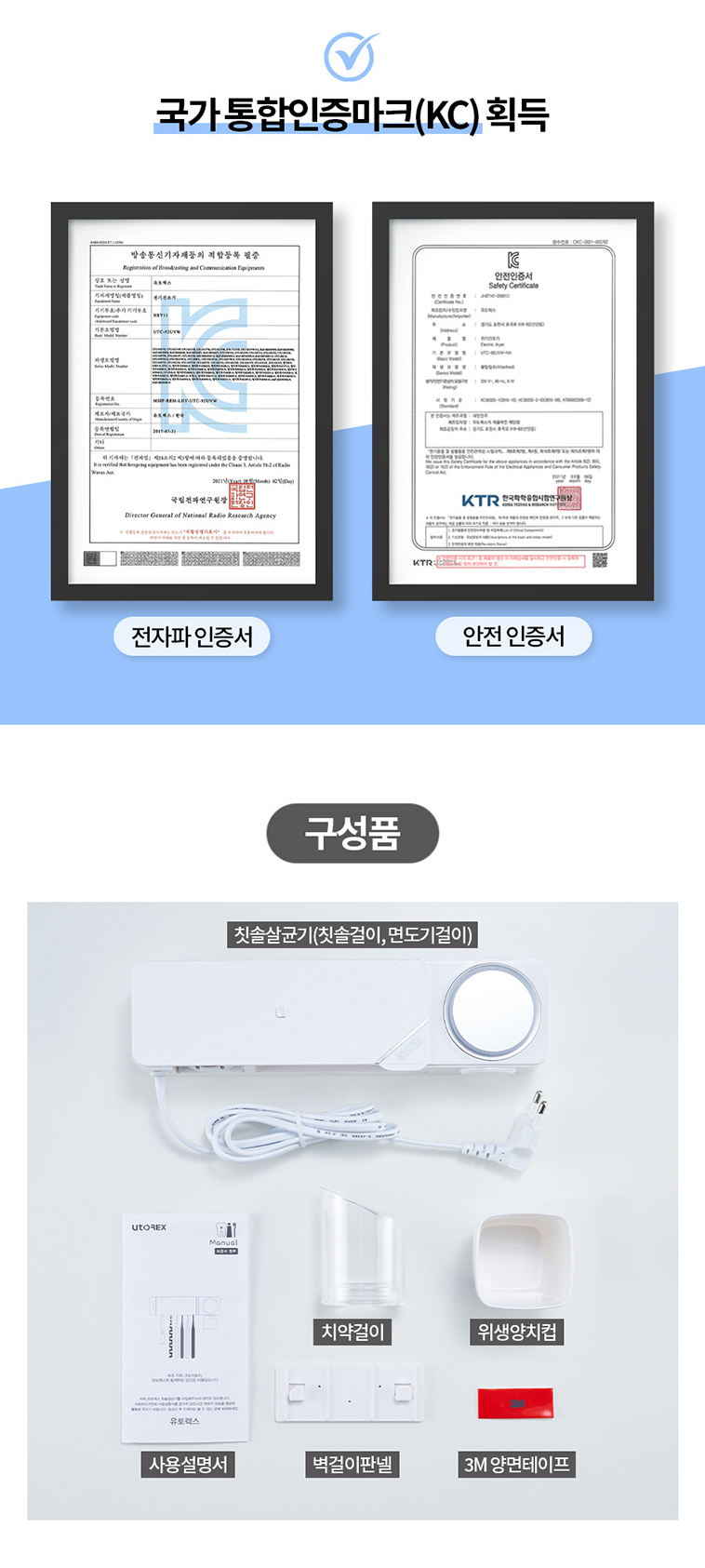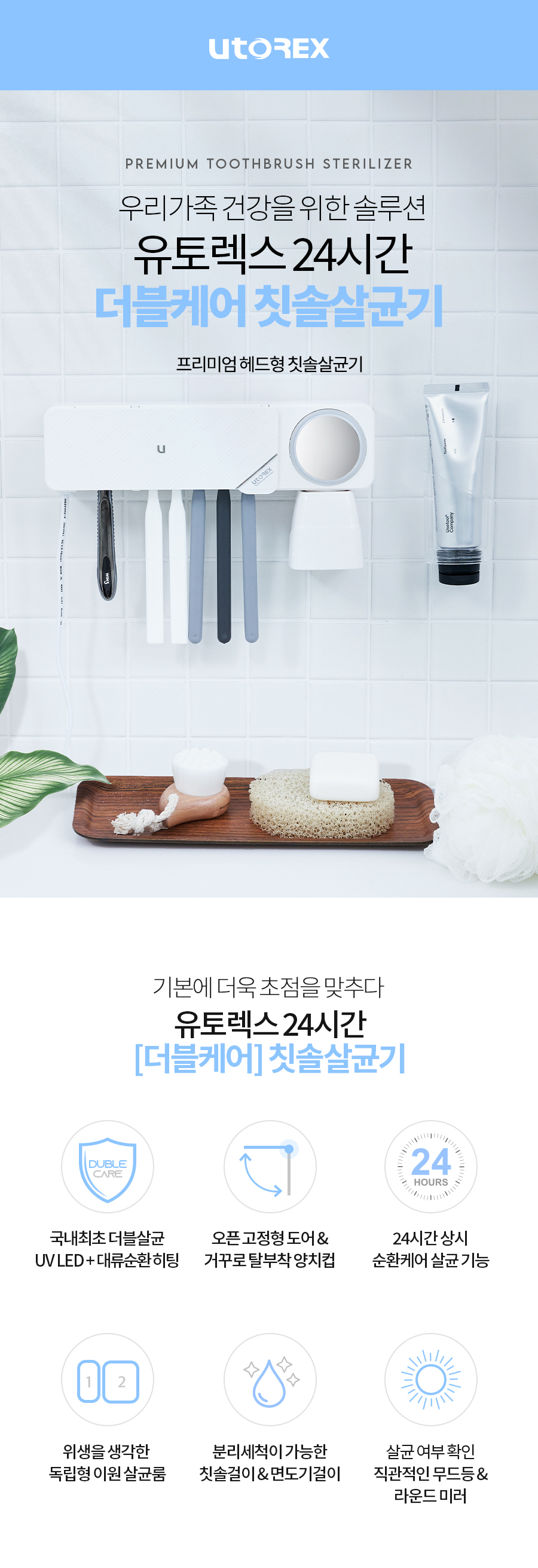 [유토렉스] 프리미엄 더블케어 UV 히팅건조 듀얼 칫솔살균기 UTC-62VW