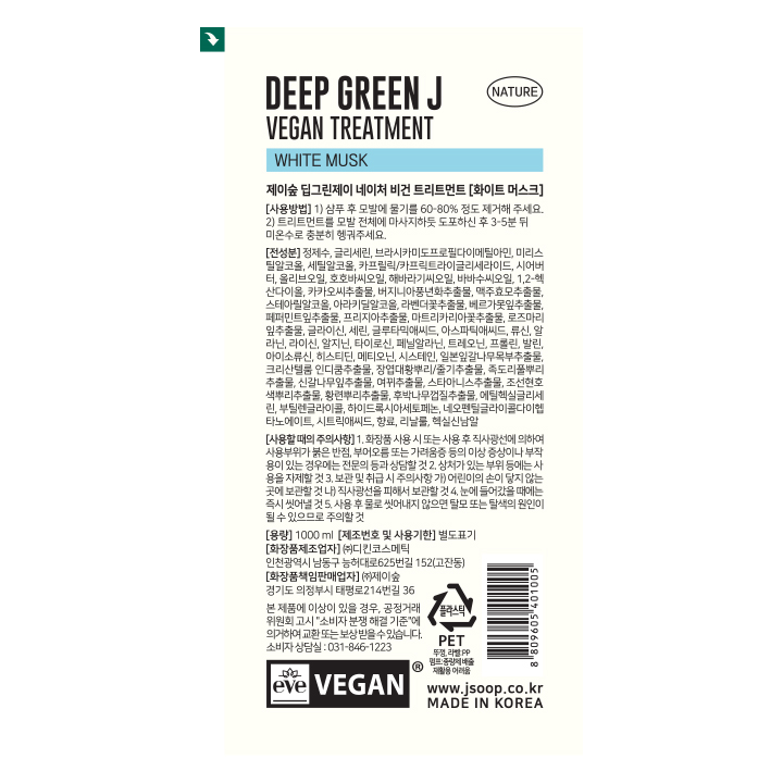[제이숲] 딥그린제이 네이처 트리트먼트 1000ml - 베이비파우더