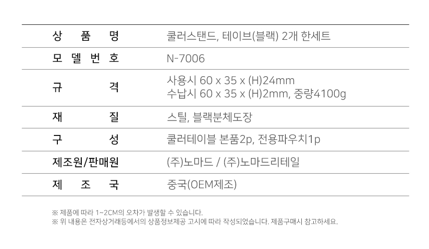 노마드 쿨러 스탠드 테이블 2개세트 블랙 차박 낚시 등산 선반 경량 접이식 캠핑 용품 N-7006