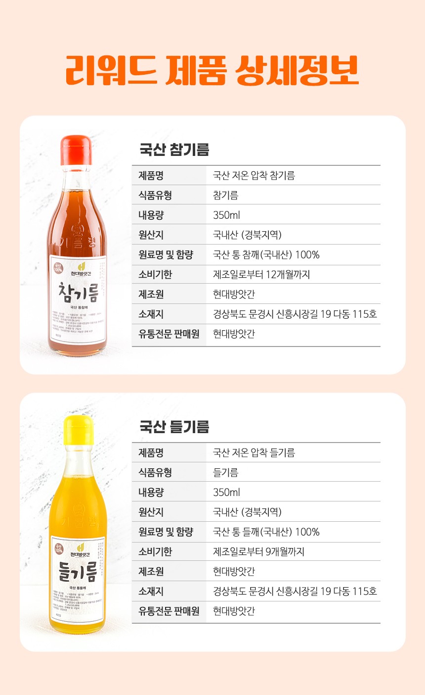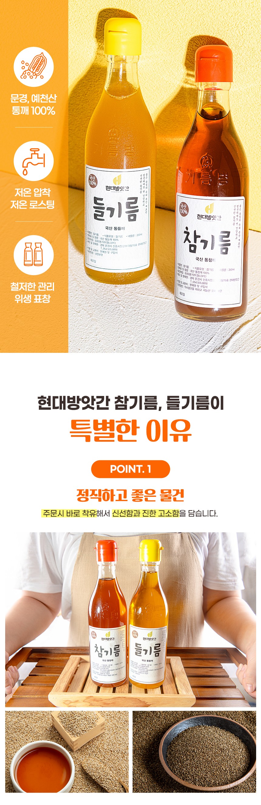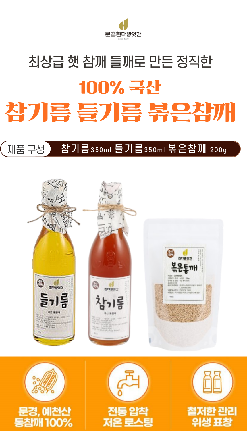 [문경현대방앗간]국산 참기름+들기름+볶은참깨 3종세트
