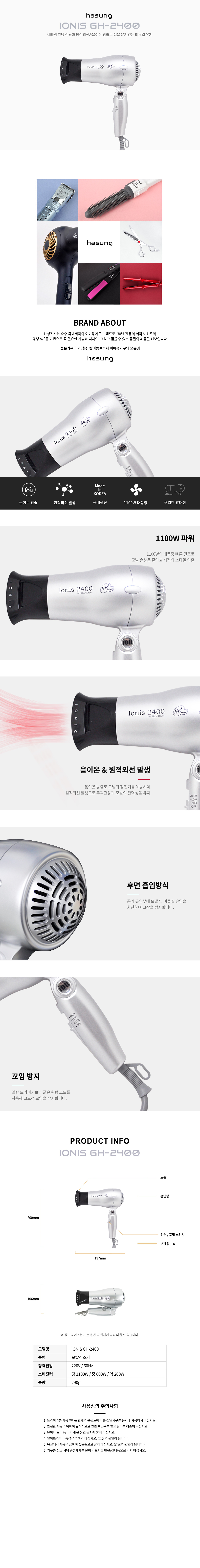1. 드라이기를 사용할때는한개의 콘센트에다른 전열기구를 동시에 사용하지 마십시오