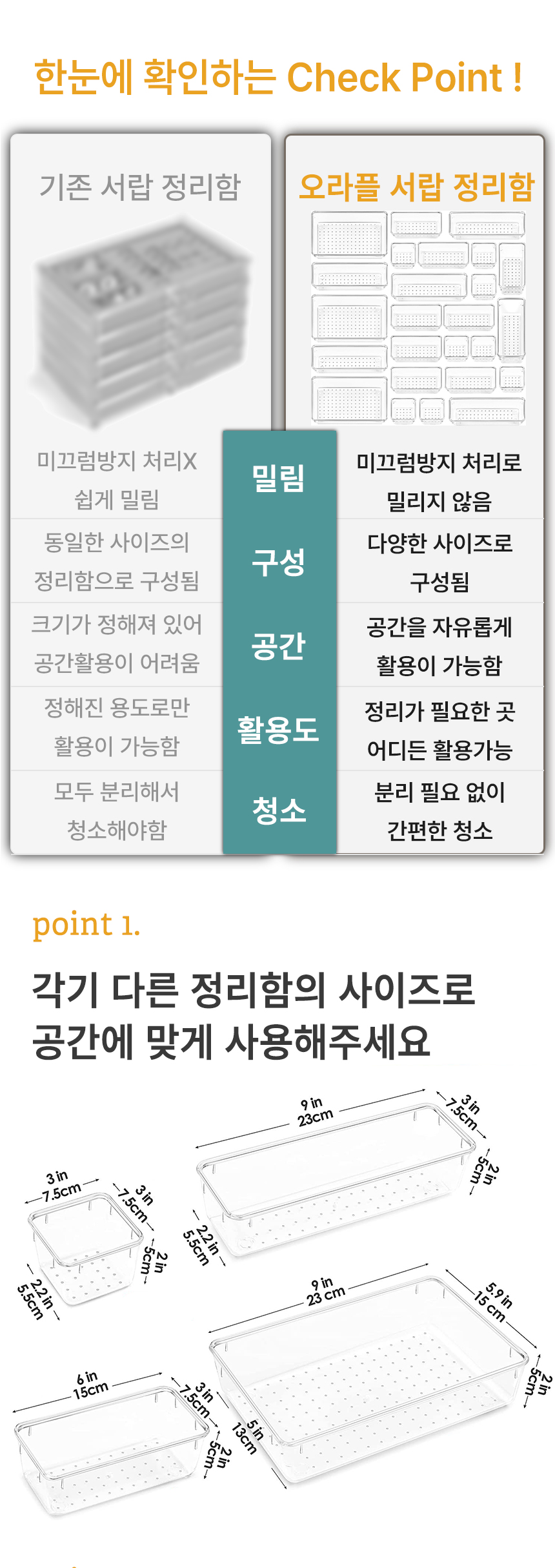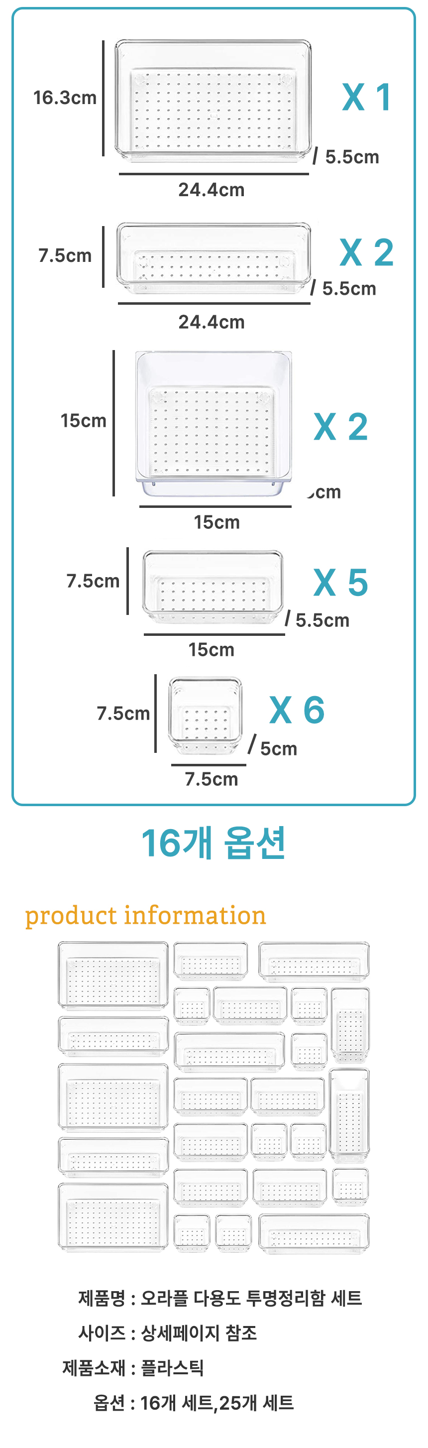 [오라플] 다용도 서랍정리함 세트 칸막이 25종세트