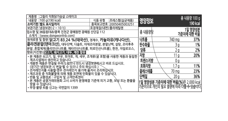 [동원] 그릴리 직화 닭가슴살 스테이크 100g x 10개 (003911212)