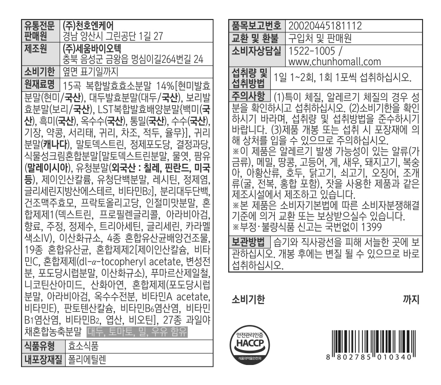 [천호엔케어] 더비움채움 곡물발효효소 3g * 30포