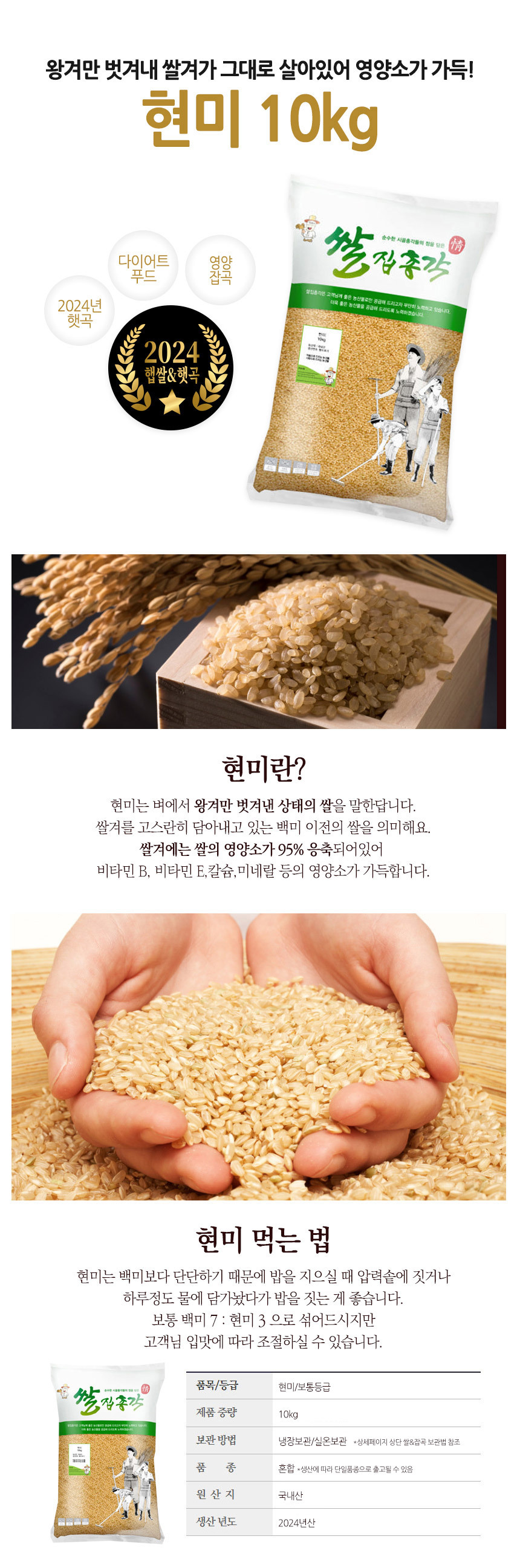 [2024년햅쌀] 국내산 현미 쌀 10kg
