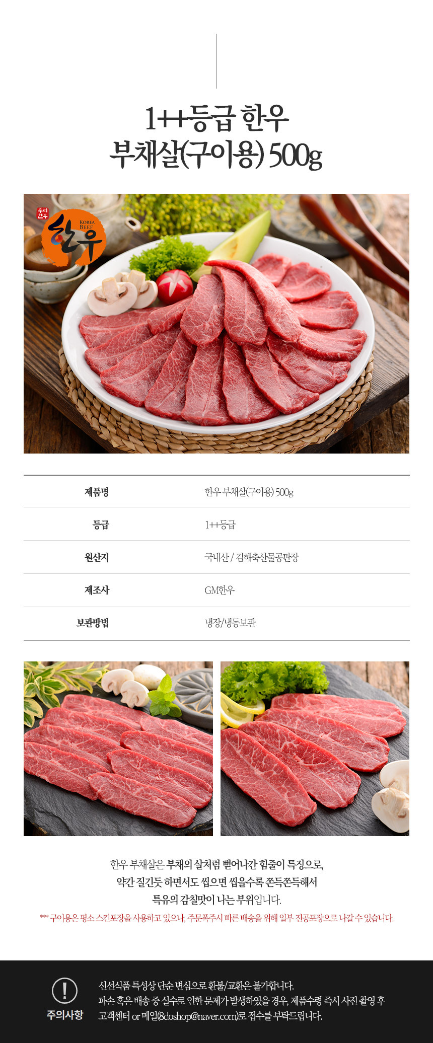 [숙성 한우] 소고기 1++등급 부채살 500g (구이용) x2팩 (총1kg)