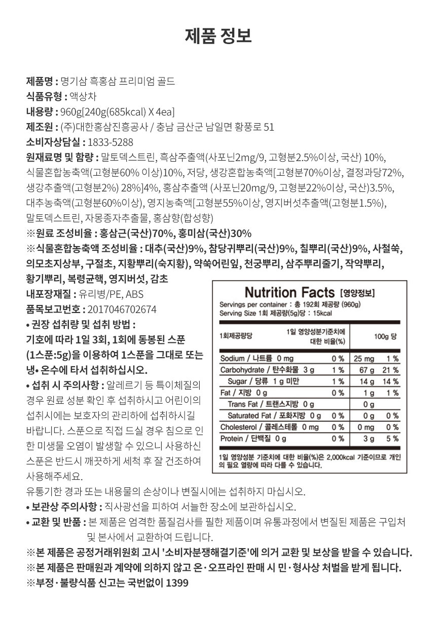 [JS] 명기삼 흑홍삼 프리미엄 골드 240g 4병