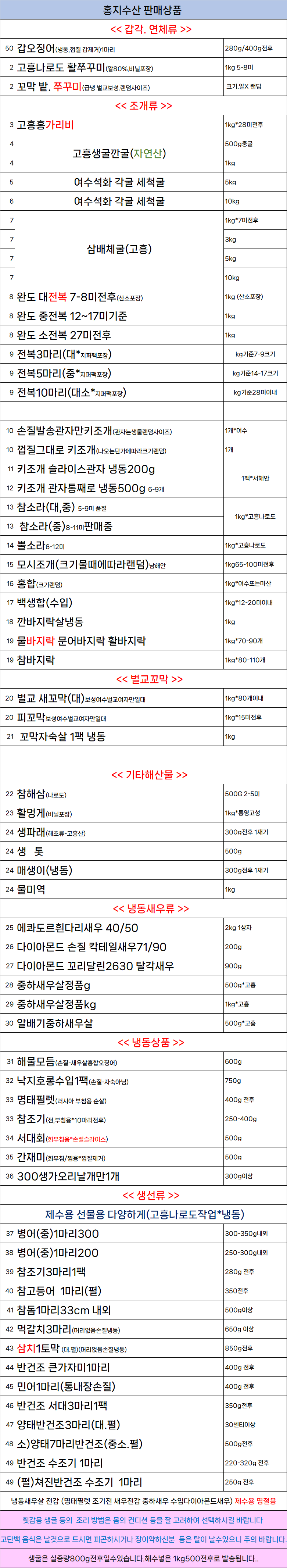 손질중량 미포함되었습니다.