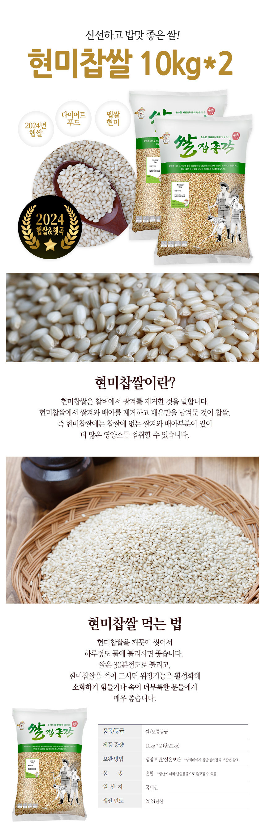 [2024년햅쌀] 국내산 현미찹쌀 10kg x 2 (총20kg)