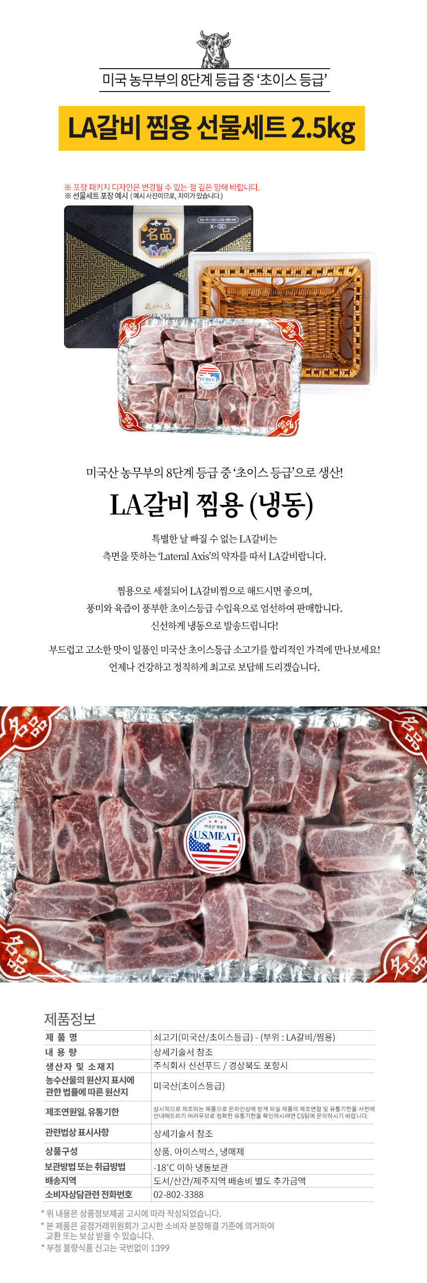 신선한 미국산 초이스등급 LA갈비 찜용 2.5kg 선물세트