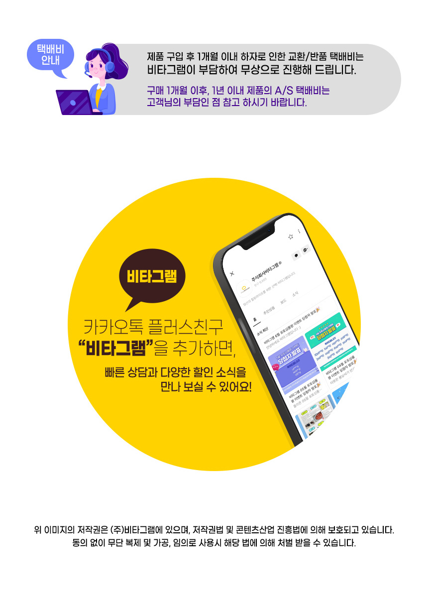 - 상품 수령 후 7일 이내에 신청하실 수 있습니다. 단, 제품이 표시·광고 내용과 다르거나, 계약과 다르게 이행된 경우는 제품 수령일부터 3개월 이내, 그 사실을 안 날 또는 알 수 있었던 날부터 30일 이내에 교환/반품이 가능합니다.