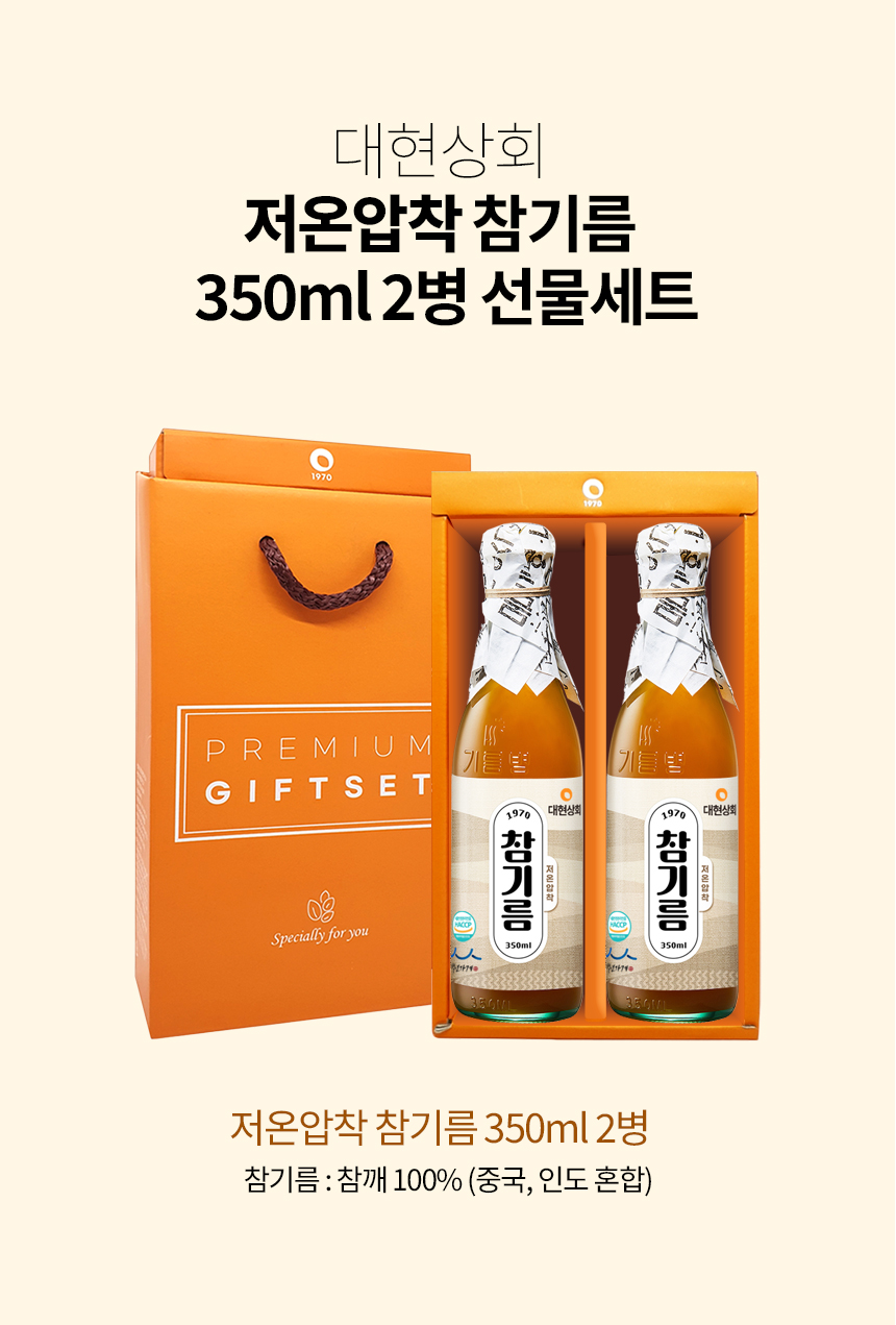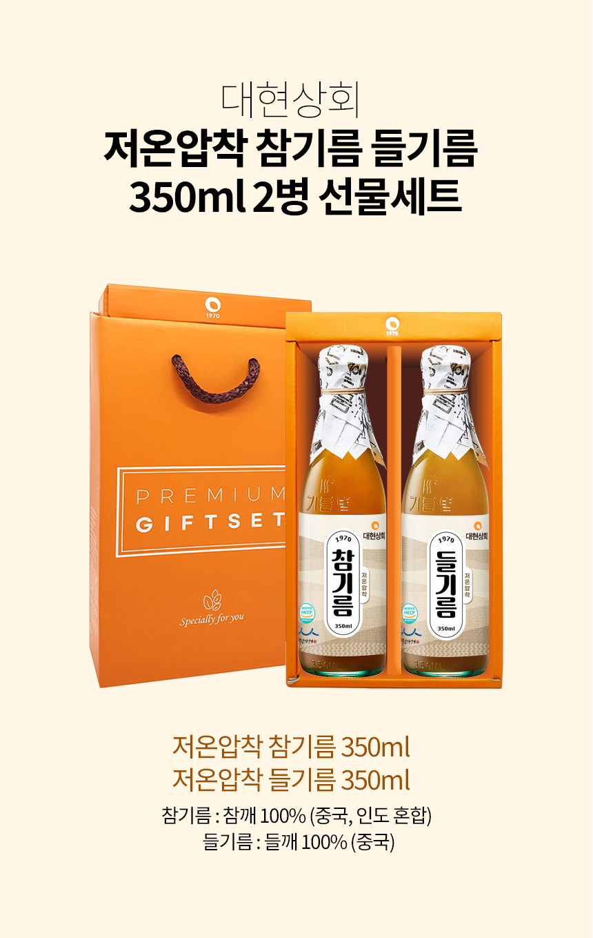 55년전통 대현상회 저온압착 참기름 들기름 350ml 선물세트 / HACCP 인증 백년가게