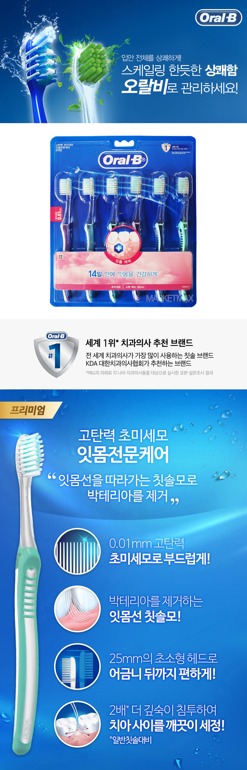 [오랄비] 고탄력 초미세모 잇몸전문케어 칫솔 6입X2개(12입)