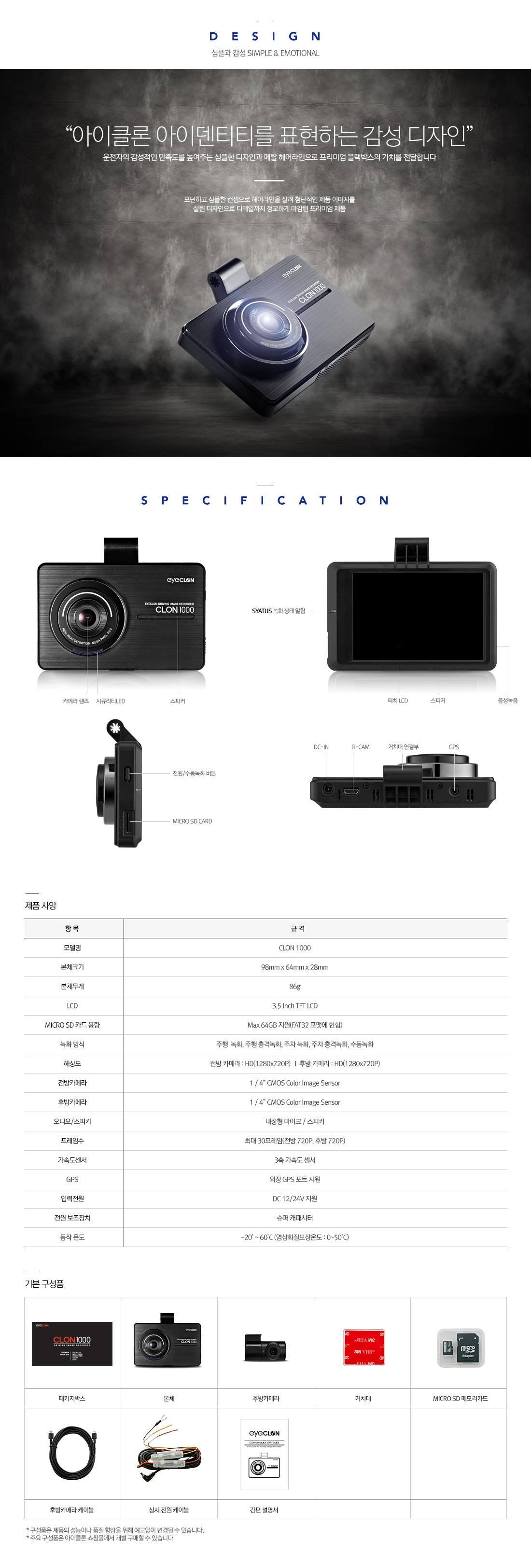 [아이클론] CLON1000 16GB 2채널 블랙박스