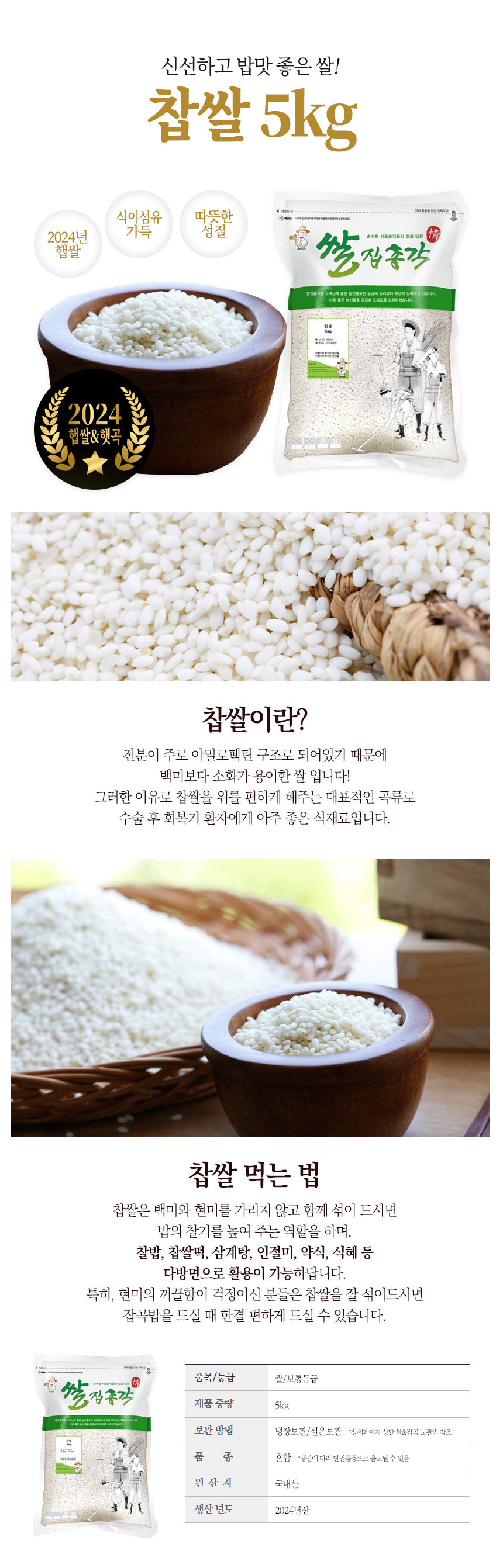 [2024년햅쌀] 국내산 찹쌀 5kg
