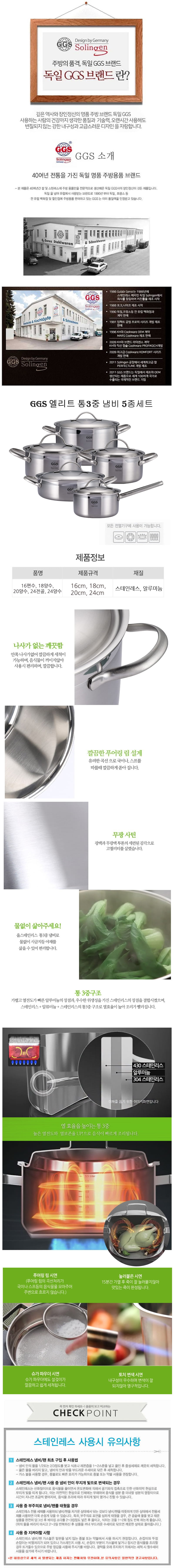 [독일 GGS] 엘리트 통3중 스텐냄비  5종 세트