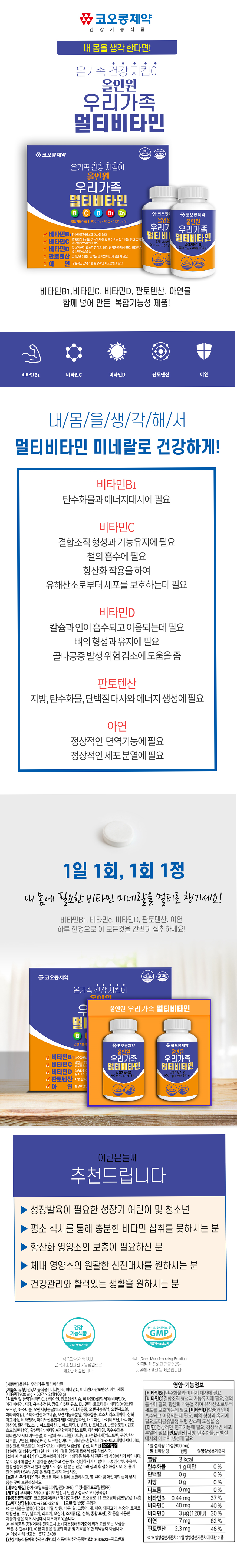[만원의행복]코오롱제약 올인원 우리가족 멀티비타민 900mg*60정[2병]