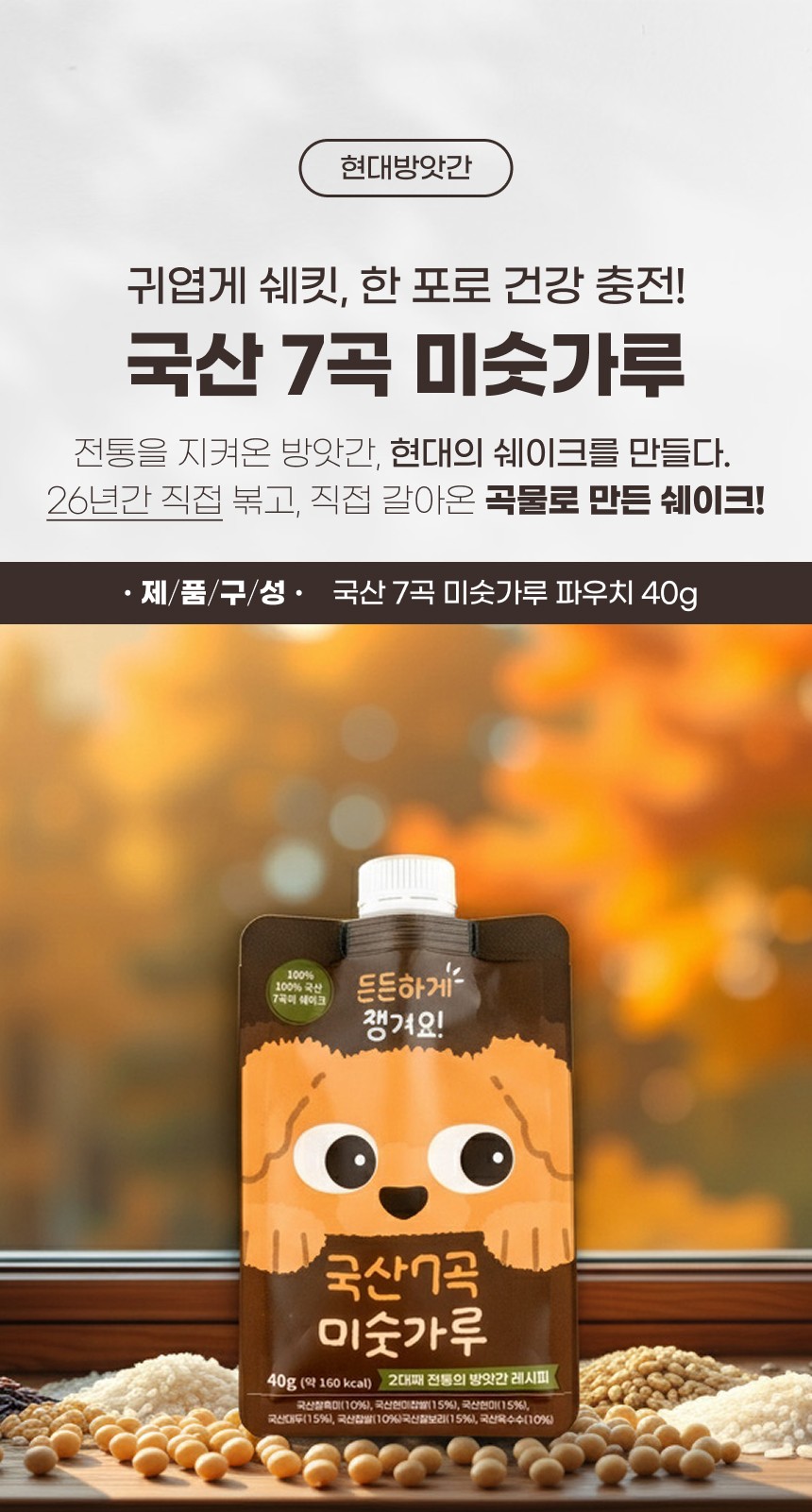 [문경현대방앗간]100% 국산 7곡 미숫가루 스파우트 파우치 40gx5팩