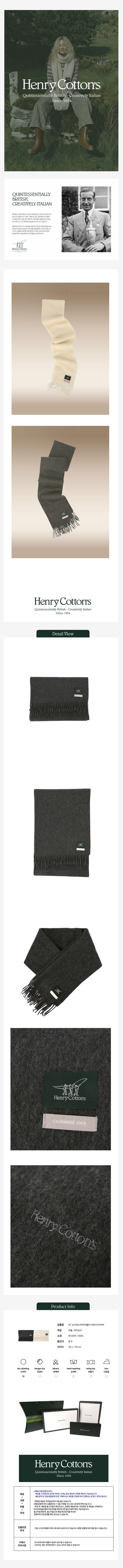 [헨리코튼]HC 뉴이캐시미어 머플러 (캐시미어 100%) 백화점판매상품