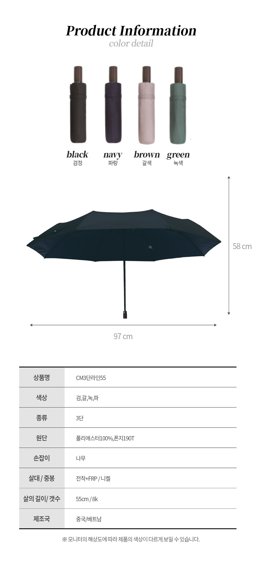 [송월] CM3단라인완자55 3단우산