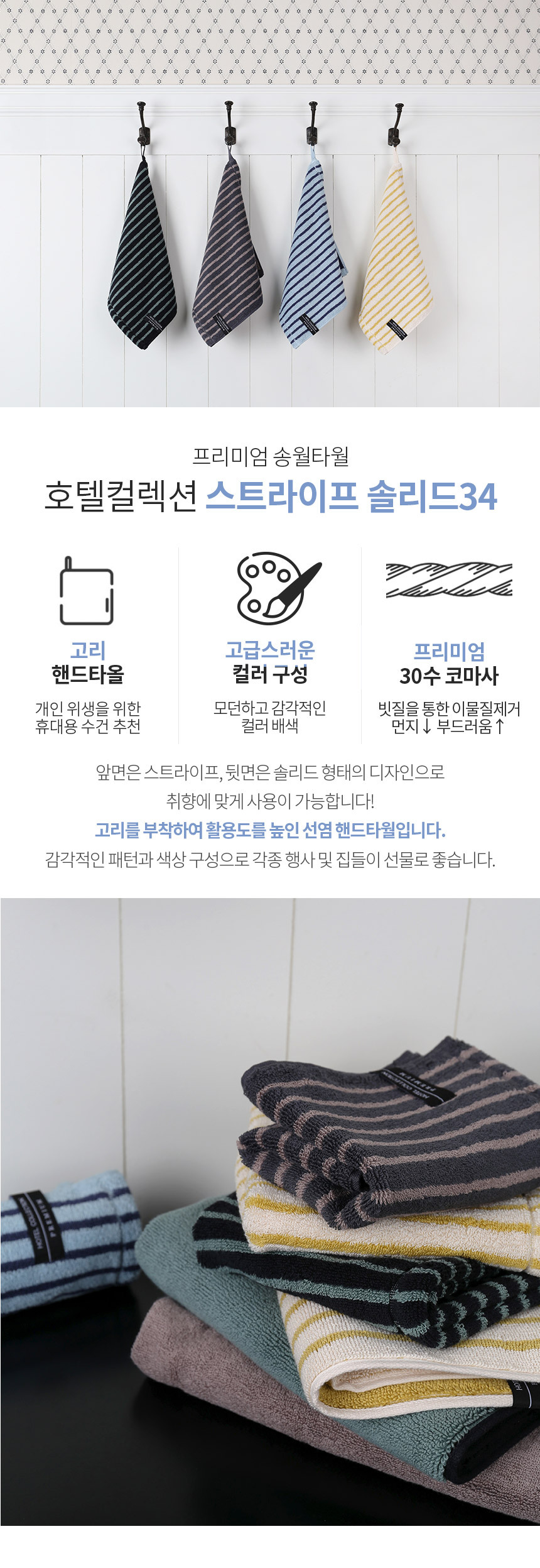 | 품명 및 모델명 | [송월] 호텔컬렉션 스트라이프 솔리드34 고리 핸드타올 10장 |