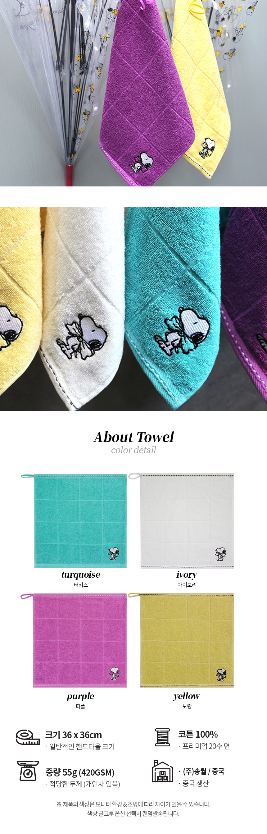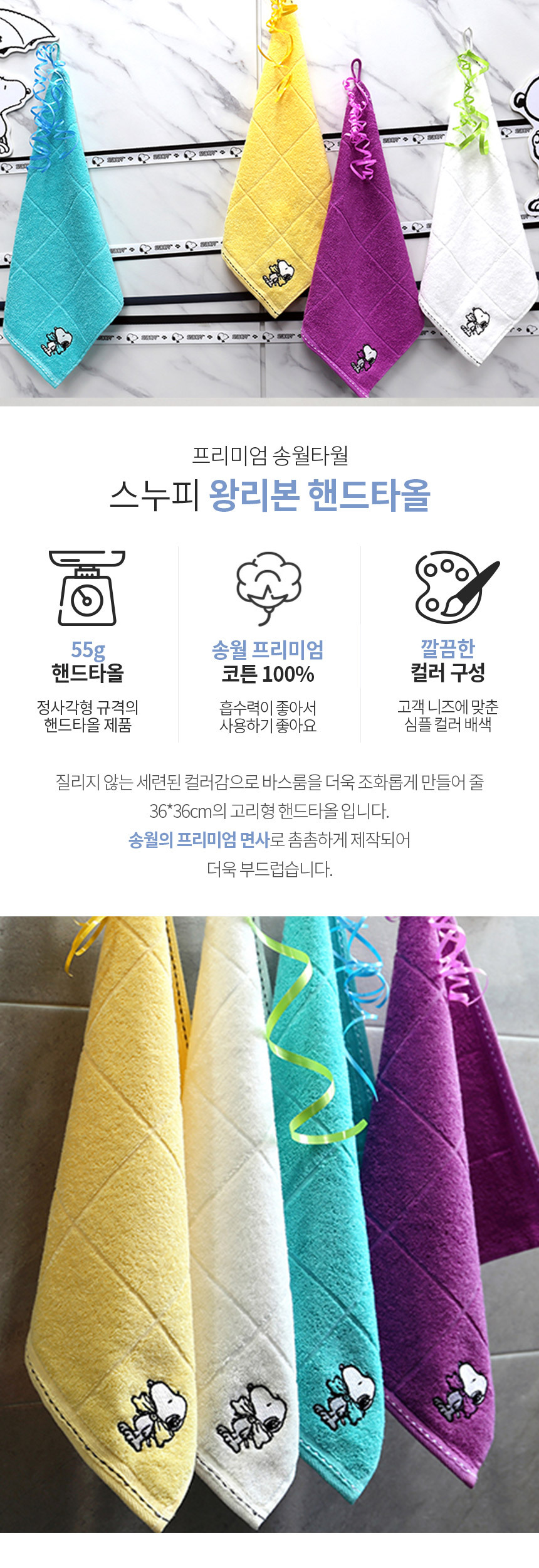 | 품명 및 모델명 | [송월] 스누피 왕리본 고리 핸드타올 10장 |