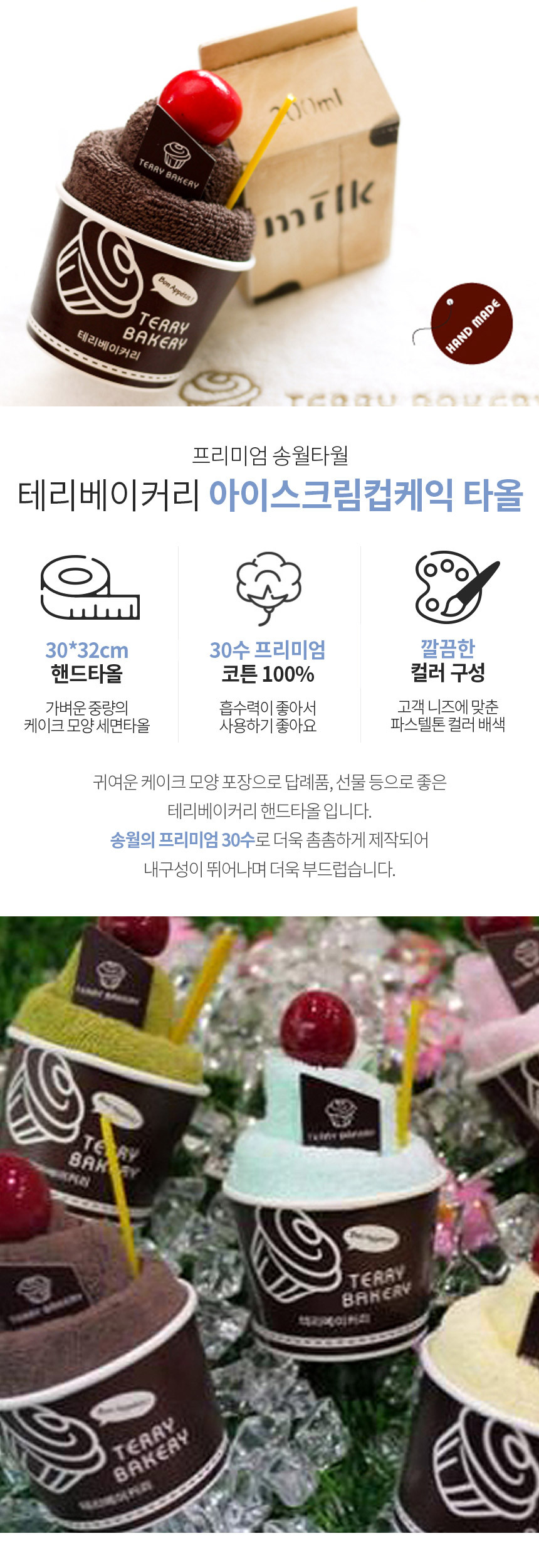 | 품명 및 모델명 | [송월] 테리베이커리 아이스크림 컵케익 타올 3개 |