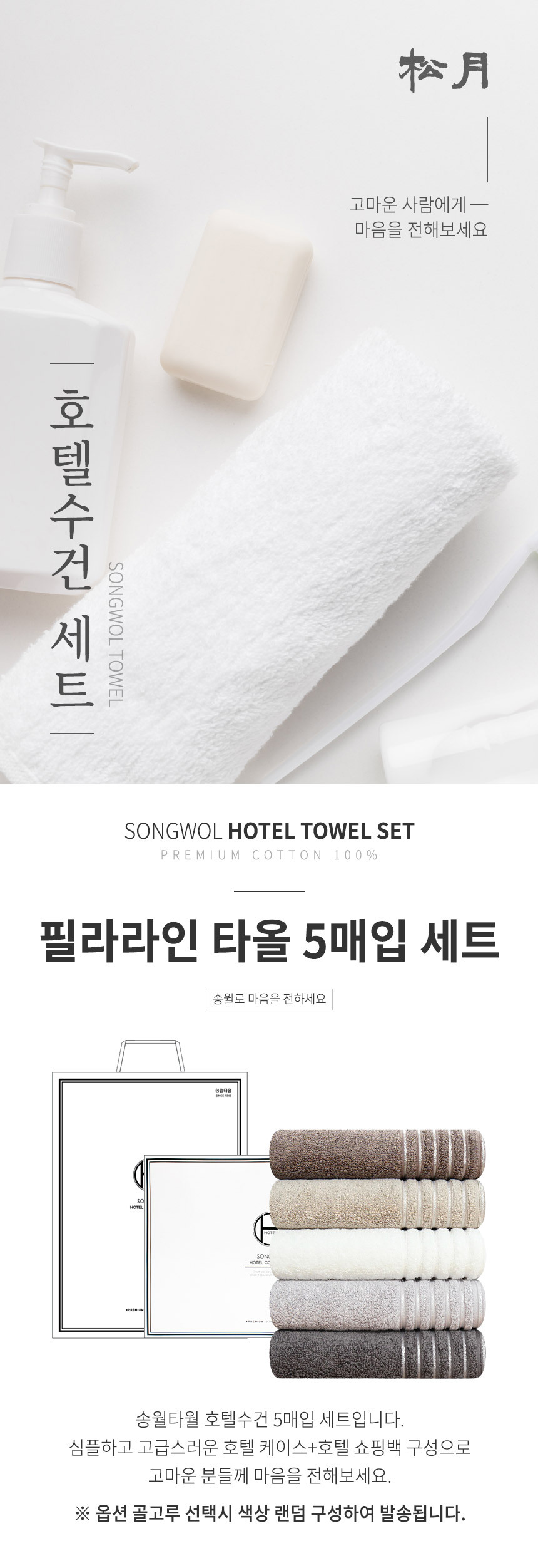 | 품명 및 모델명 | [송월] 호텔컬렉션 필라라인 190g 호텔타올 5매입 선물세트 |