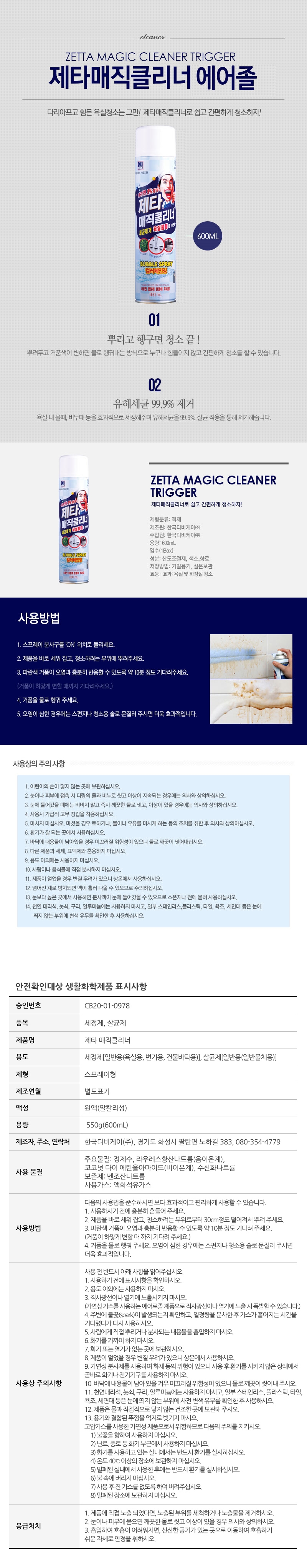 제타 매직클리너 에어로졸 600mlx2 간편욕실청소