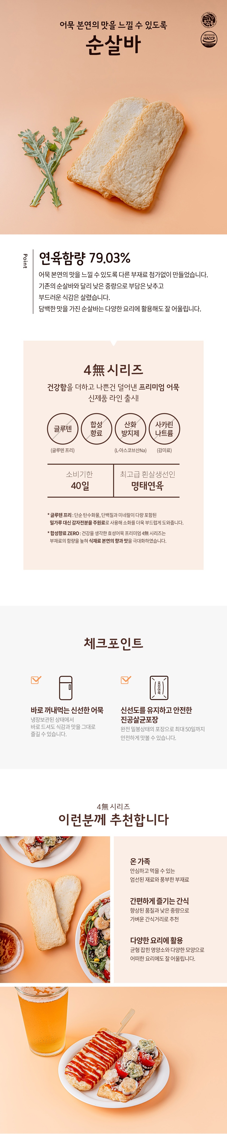 효성어묵 부산 전통 순살바 어묵 밀가루 없는 글루텐 프리 x 6개