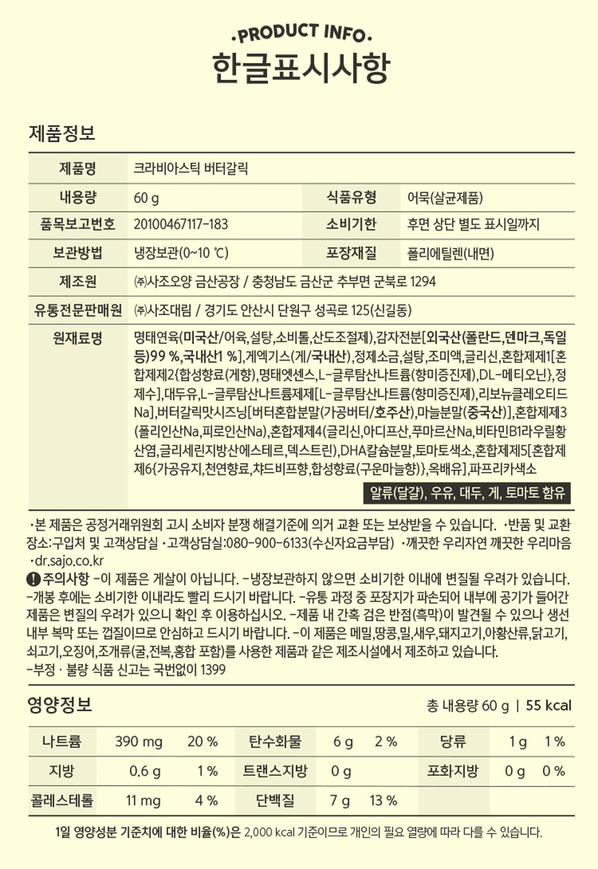 대림선 크라비아스틱 버터갈릭 60g x 20개