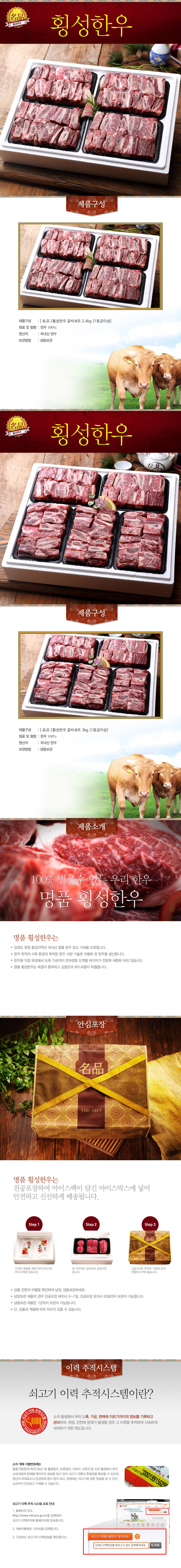 [名品] 프리미엄 횡성한우 갈비세트 2.4kg / 3kg [1등급이상]