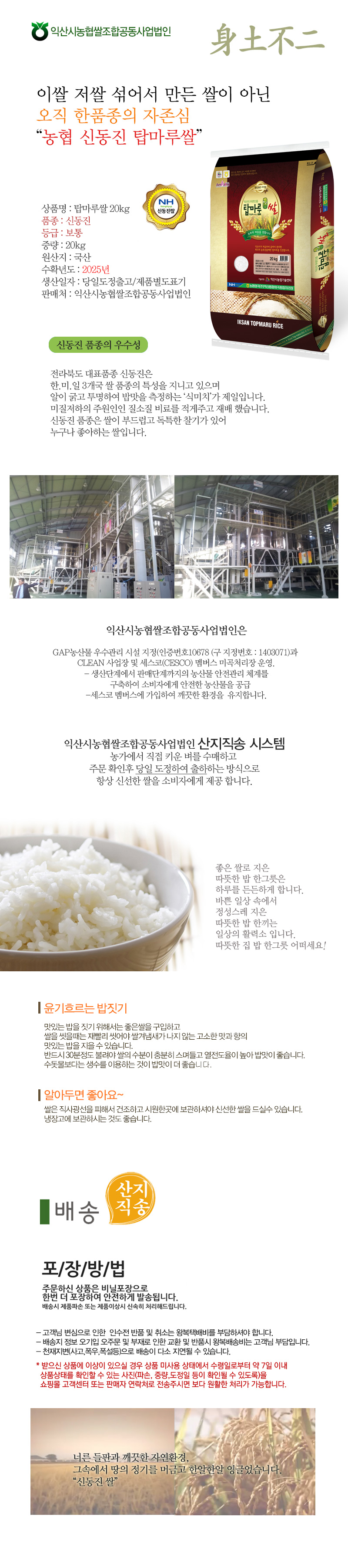 [익산시농협쌀조합] 미륵 탑마루쌀(신동진)20kg (25년쌀/당일도정)