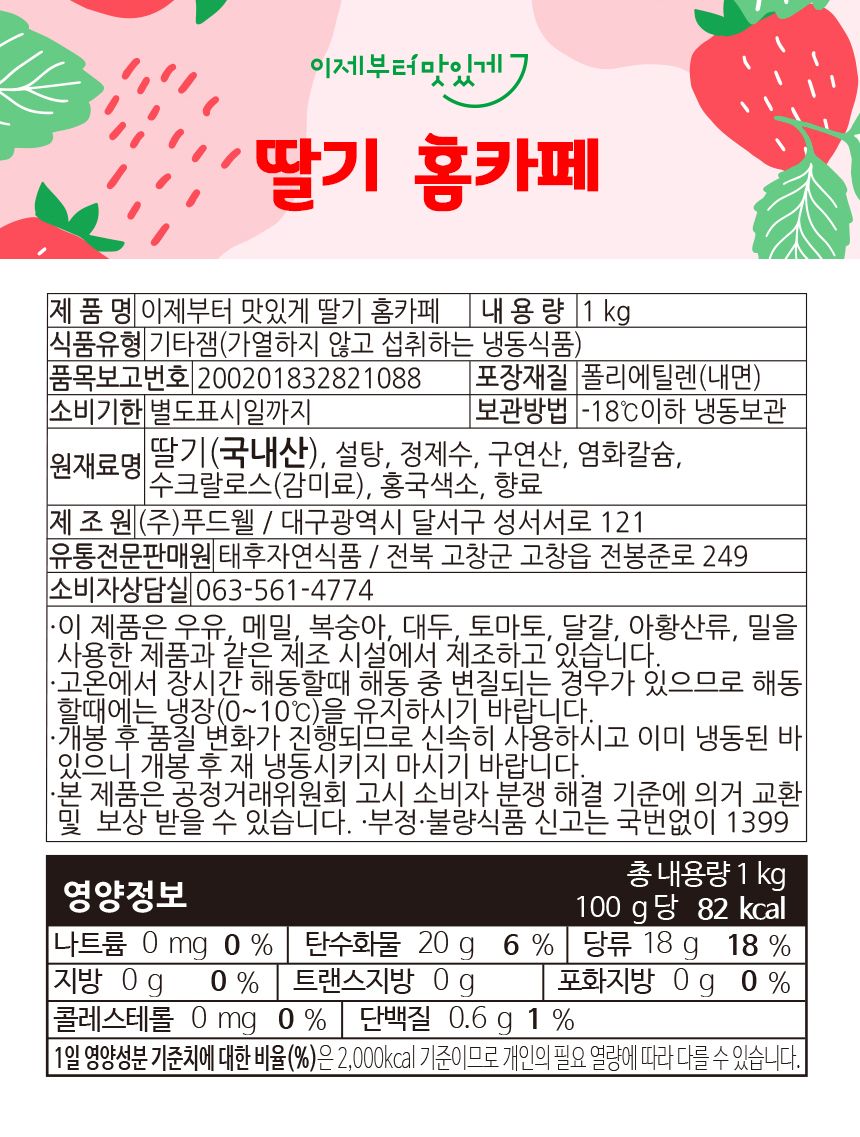 이제부터 맛있게 딸기 홈카페 [1kg 1팩]