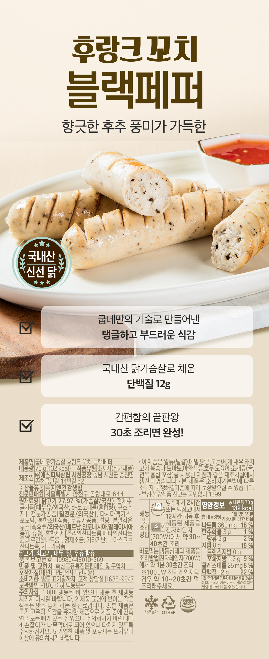 [굽네] 닭가슴살 후랑크 꼬치 블랙페퍼 70g 15팩