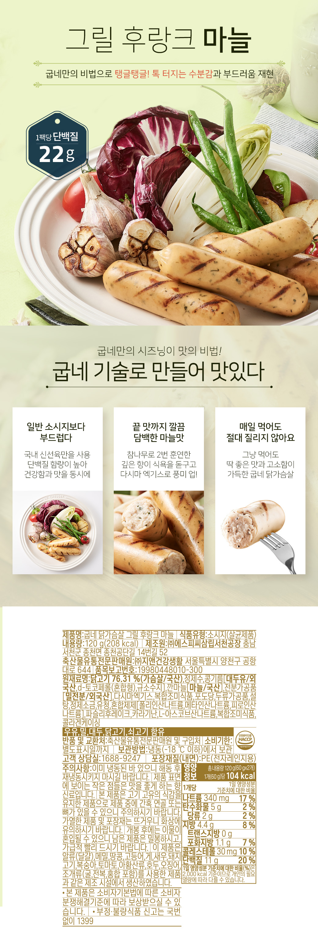 [굽네] 닭가슴살 그릴후랑크 마늘 120g 20팩