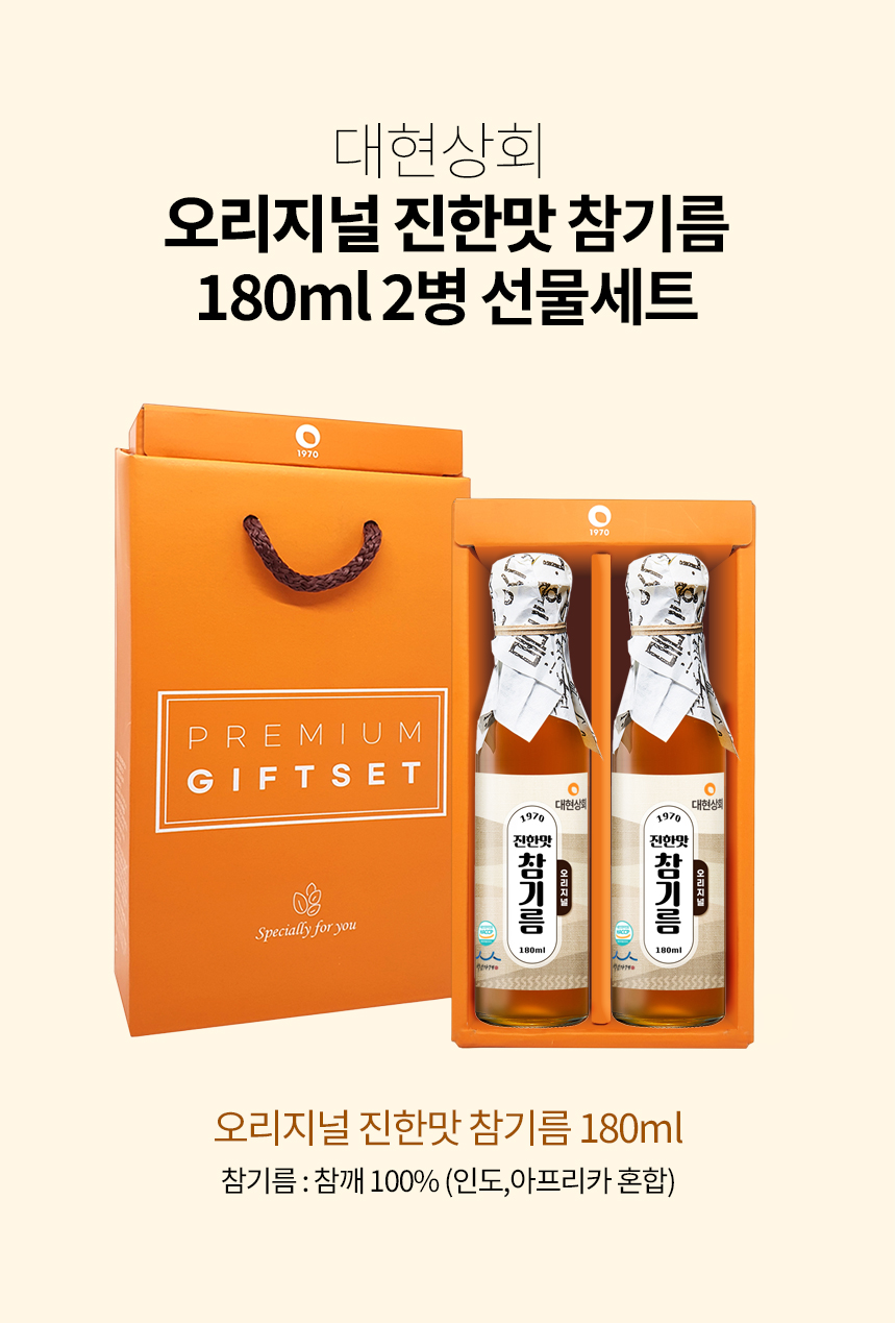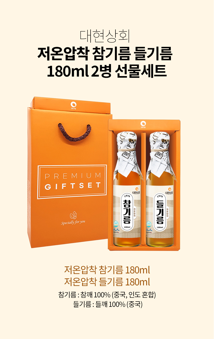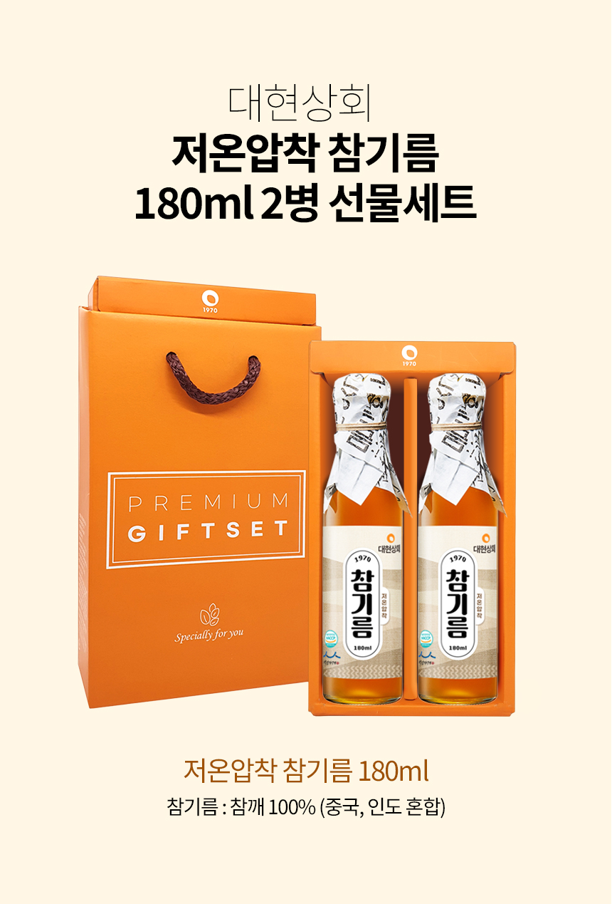 55년전통 대현상회 저온압착 참기름 들기름 180ml 선물세트/ HACCP 인증 백년가게