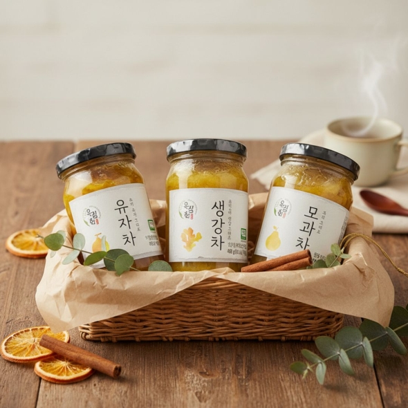 [신한카드 할인] 100% 국내산 옥잠화 첨가물 없는 유기농 유자 그대로 유자차 모과 생강차 460g 3종 선물세트