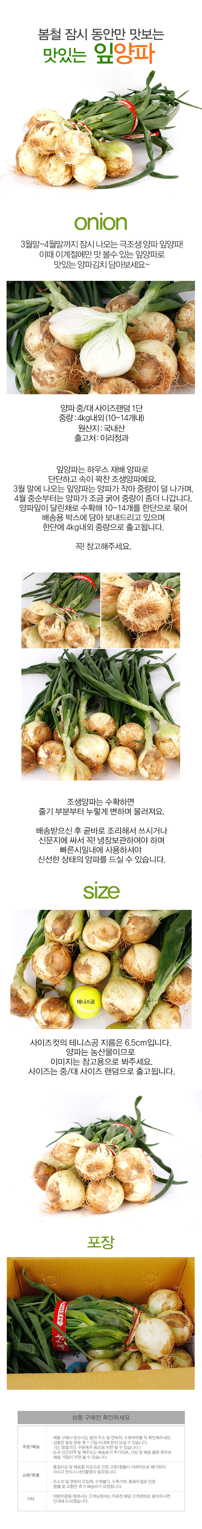 햇 잎양파 중/대랜덤 4kg내외 (1단) x 1박스