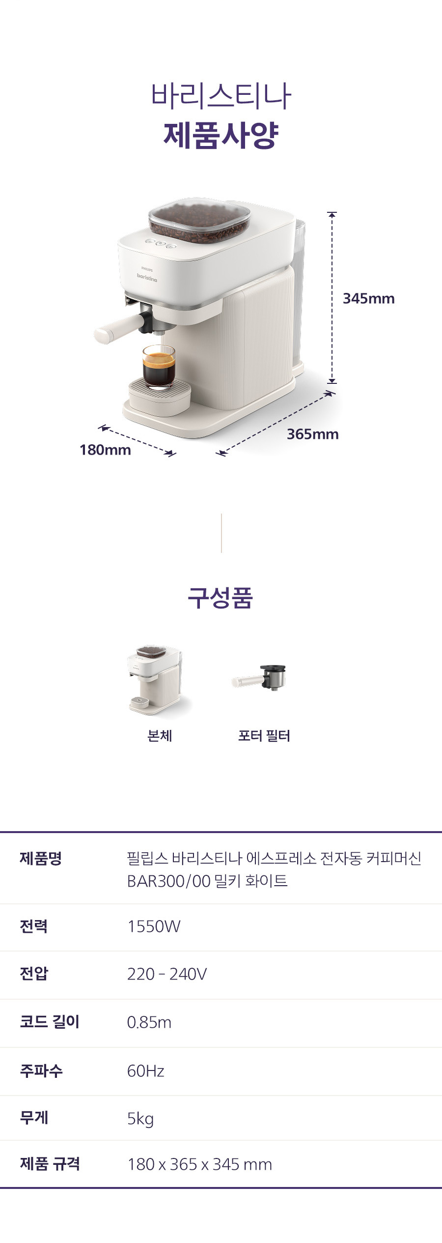 [필립스] 바리스티나 에스프레소 전자동 커피머신 BAR300/00/고급 커피 원두 증정