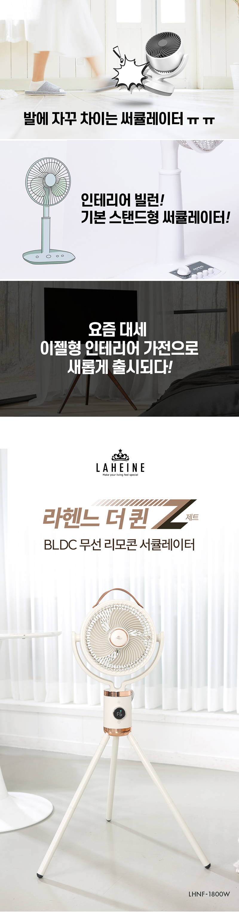 [라헨느] 더 퀸 제트 코드제로 10인치 BLDC 리모콘 무선 서큘레이터 LHNF-1800W