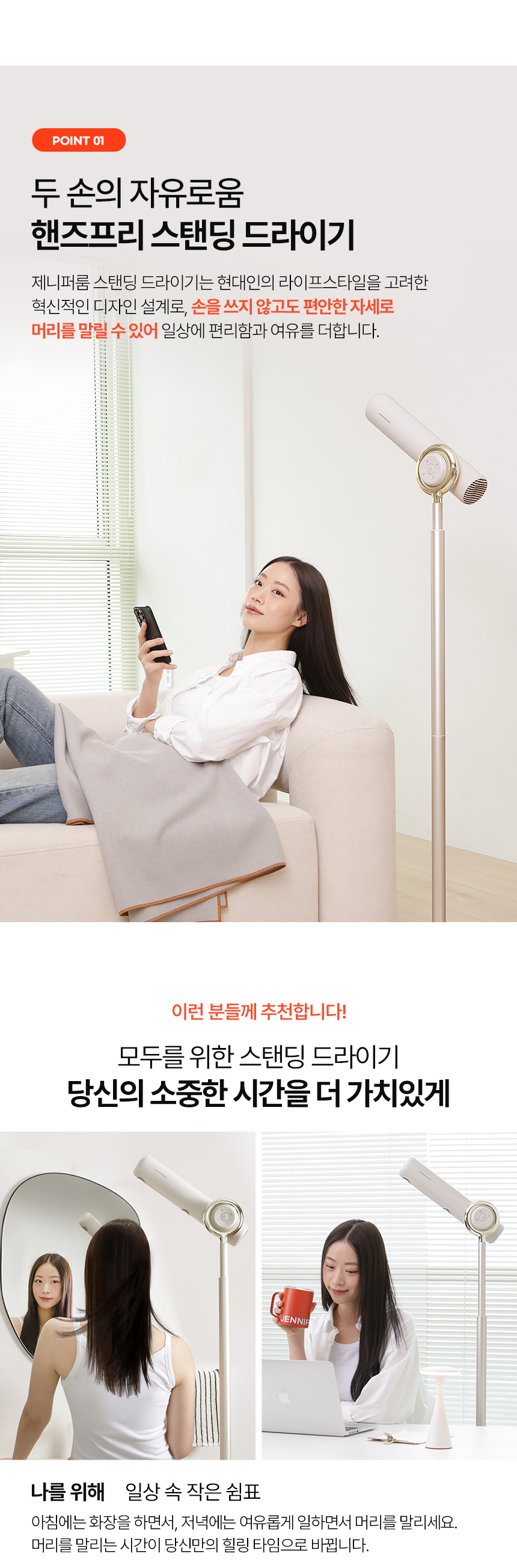 [제니퍼룸] 스탠딩 헤어드라이기_오트밀 / JRG-SD1701OM