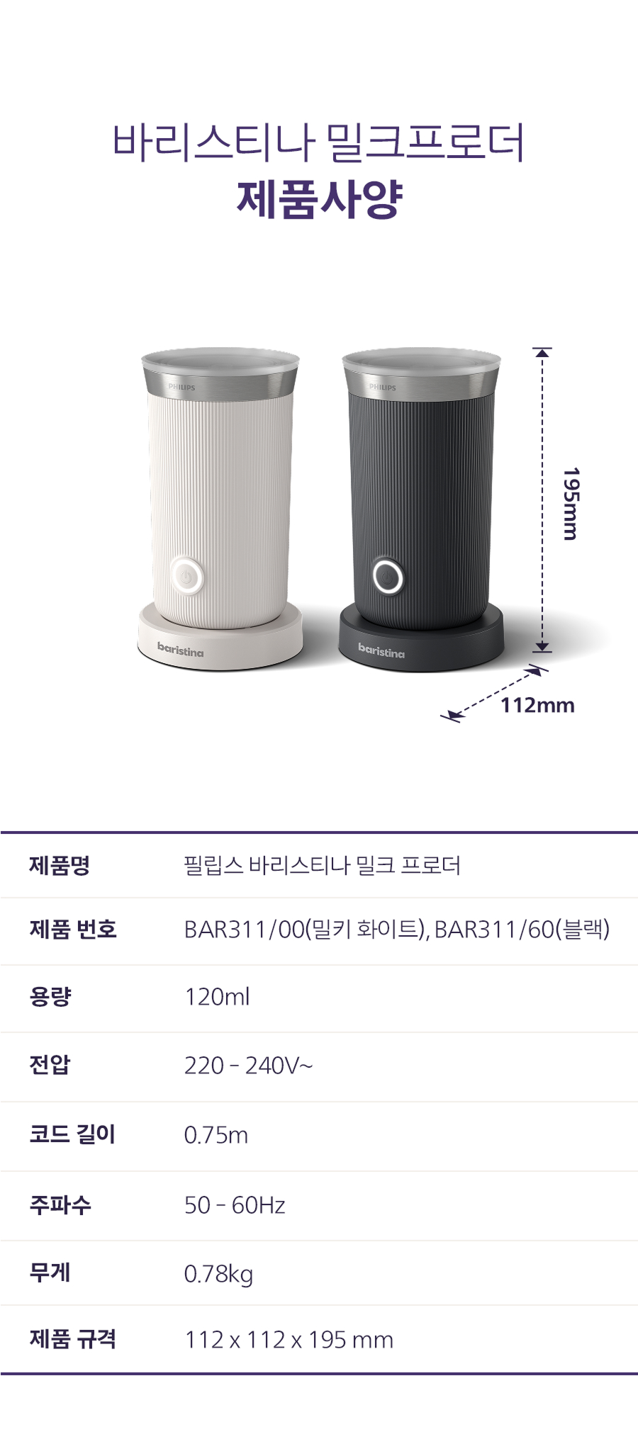 [필립스] 바리스티나 밀크프로더 화이트 BAR311/00